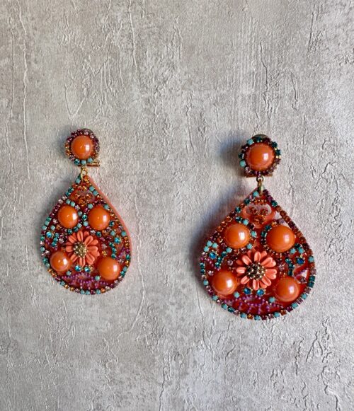 Pendientes hechos sobre una base con cristal de swarovski multicolor, piedras de cerámica y cierre omega.