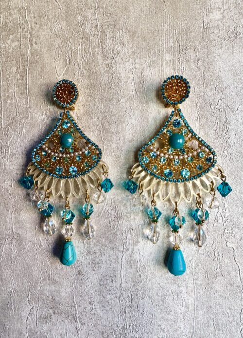 Pendientes hechos a mano de forma artesanal con piedras de swarovski y piedras de cristal.
